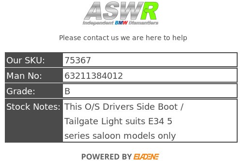 This O/S Drivers Side Boot / Tailgate Light suits E34 5 series saloon models only