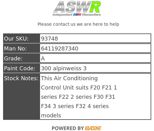 ASWR is a independent BMW dismantler / Green parts supplier based in Manchester. Since its founding in 2003 it has become a reliable independent BMW parts supplier its good customer satisfaction has earned us the status of being one of the UK’s leading BMW dismantlers.