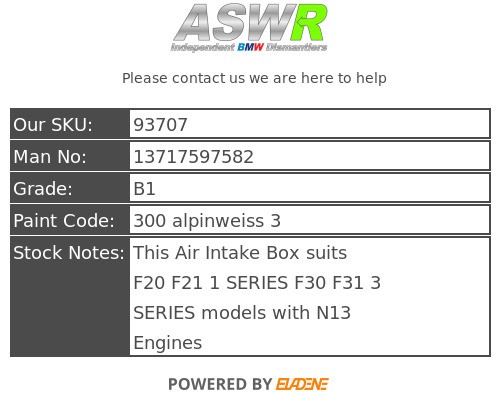 ASWR is a independent BMW dismantler / Green parts supplier based in Manchester. Since its founding in 2003 it has become a reliable independent BMW parts supplier its good customer satisfaction has earned us the status of being one of the UK’s leading BMW dismantlers.