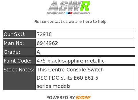 This Centre Console Switch DSC PDC suits E60 E61 5 series models