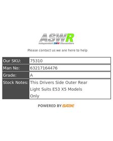 BMW E53 X5 O/S Drivers Side Outer Rear Light 63217164476