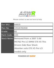 BMW E70 X5 Pre LCI Rear Shock Absorber O/S Drivers Side 33526781930