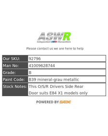 BMW E84 X1 Door Rear O/S Drivers Right Side 41009628744