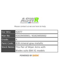 BMW E84 X1 Front Wiper Arms Pair 61619450001 / 61619450002