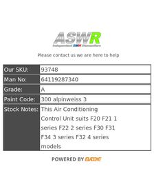 BMW Air Conditioning Control Unit 1 2 3 4 SERIES F20 F22 F30 F32 64119296781