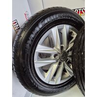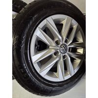 VW CADDY 2016 SET OF 4 15" ALLOY WHEELS 2K5601025L VERY GOOD TYRES (AGE MARKS)