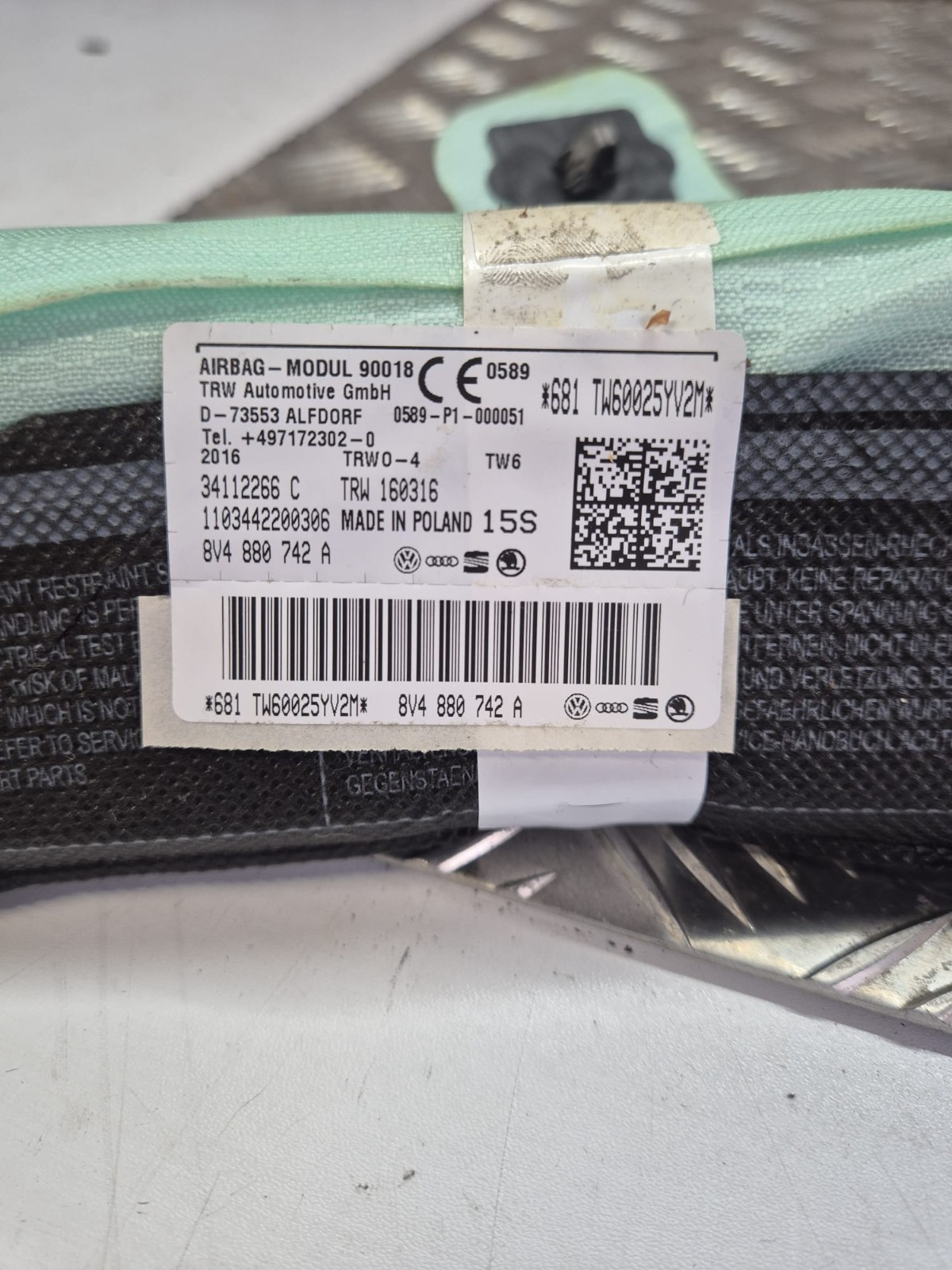 Product: AUDI A3 S3 8V 2016 DRIVERS SIDE ROOF CURTAIN A!R BAG 8V4880742A