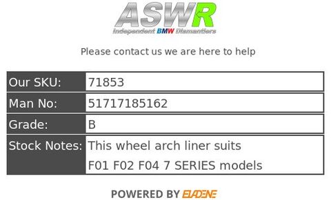 This wheel arch liner suits F01 F02 F04 7 SERIES models