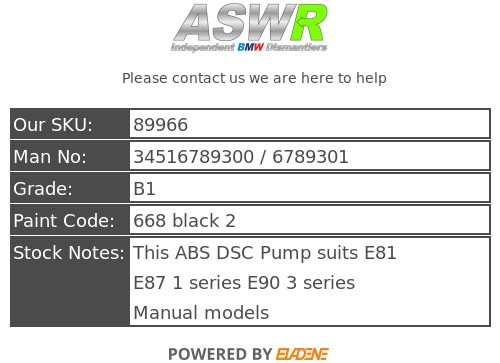This ABS DSC Pump suits E81 E87 1 series E90 3 series Manual models