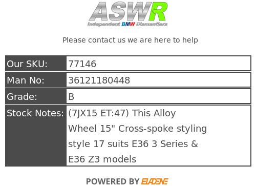 (7JX15 ET:47) This Alloy Wheel 15" Cross-spoke styling style 17 suits E36 3 Series & E36 Z3 models