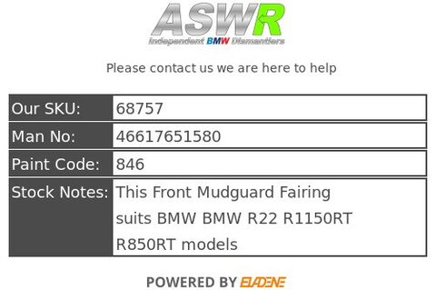 This Front Mudguard Fairing suits BMW BMW R22 R1150RT R850RT models