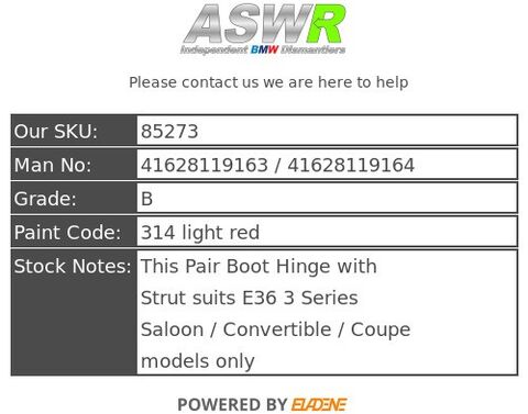 This Pair Boot Hinge with Strut suits E36 3 Series Saloon / Convertible / Coupe models only