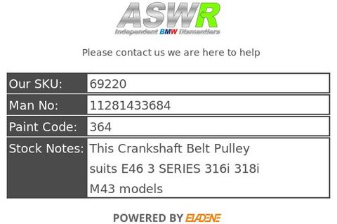 This Crankshaft Belt Pulley suits E46 3 SERIES 316i 318i M43 models