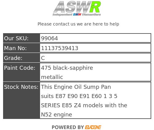 This Engine Oil Sump Pan suits E87 E90 E91 E60 1 3 5 SERIES E85 Z4 models with the N52 engine