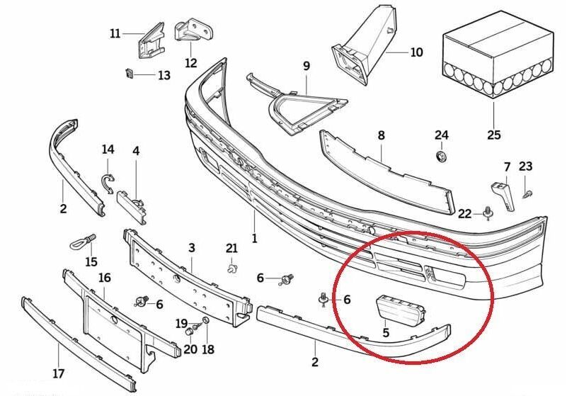 This O/S Drivers Side Foglight Cover suits E36 3 series models only