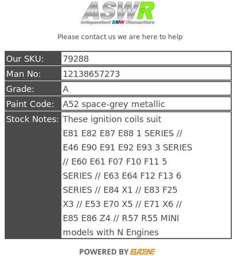 ASWR is a independent BMW dismantler / Green parts supplier based in Manchester. Since its founding in 2003 it has become a reliable independent BMW parts supplier its good customer satisfaction has earned us the status of being one of the UK’s leading BMW dismantlers.