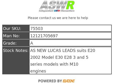 AS NEW LUCAS LEADS suits E20 2002 Model E30 E28 3 and 5 series models with M10 engines