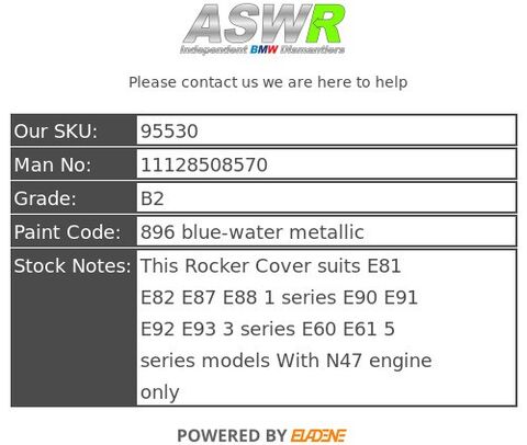 This Rocker Cover suits E81 E82 E87 E88 1 series E90 E91 E92 E93 3 series E60 E61 5 series models With N47 engine only