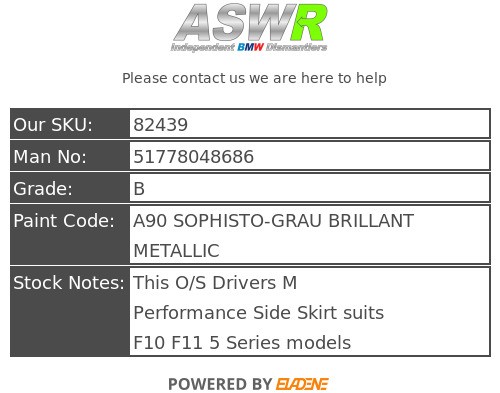 ASWR is a independent BMW dismantler / Green parts supplier based in Manchester. Since its founding in 2003 it has become a reliable independent BMW parts supplier its good customer satisfaction has earned us the status of being one of the UK’s leading BMW dismantlers.