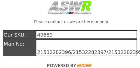 ASWR is a independent BMW dismantler / Green parts supplier based in Manchester. Since its founding in 2003 it has become a reliable independent BMW parts supplier its good customer satisfaction has earned us the status of being one of the UK’s leading BMW dismantlers.