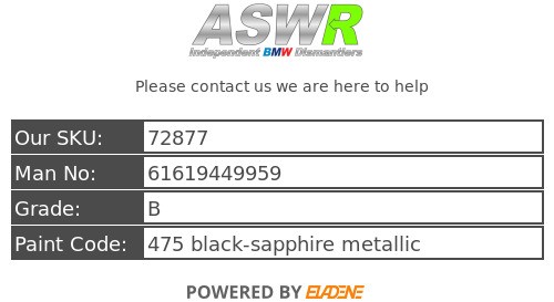 ASWR is a independent BMW dismantler / Green parts supplier based in Manchester. Since its founding in 2003 it has become a reliable independent BMW parts supplier its good customer satisfaction has earned us the status of being one of the UK’s leading BMW dismantlers.