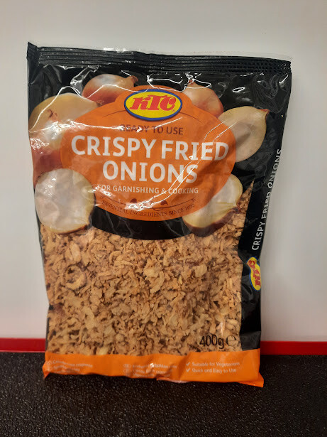Add a burst of flavour to your main meal with KTC NATCO's Crispy Fried Onions. This 400g pack of dried, crispy onions is perfect for adding a crunchy texture and savoury taste to your dishes. Ideal for vegetarians and vegans, these onions are a great addition to any pantry.