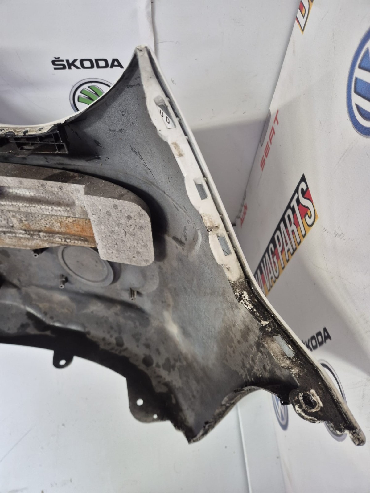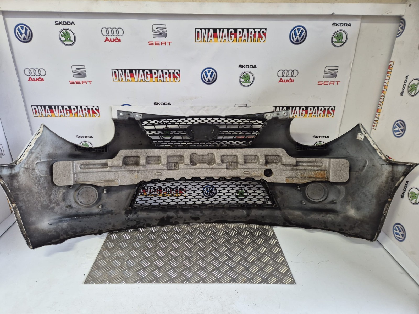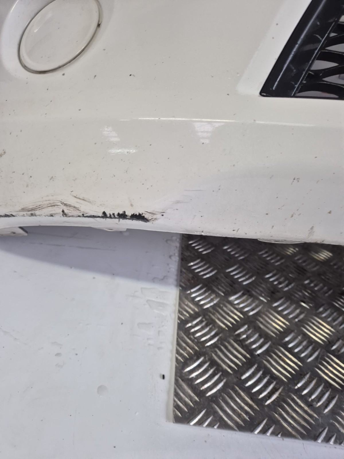 COMPLETE FRONT BUMPER CLEAR WHITE WITH AGE MARKS & DAMAGE