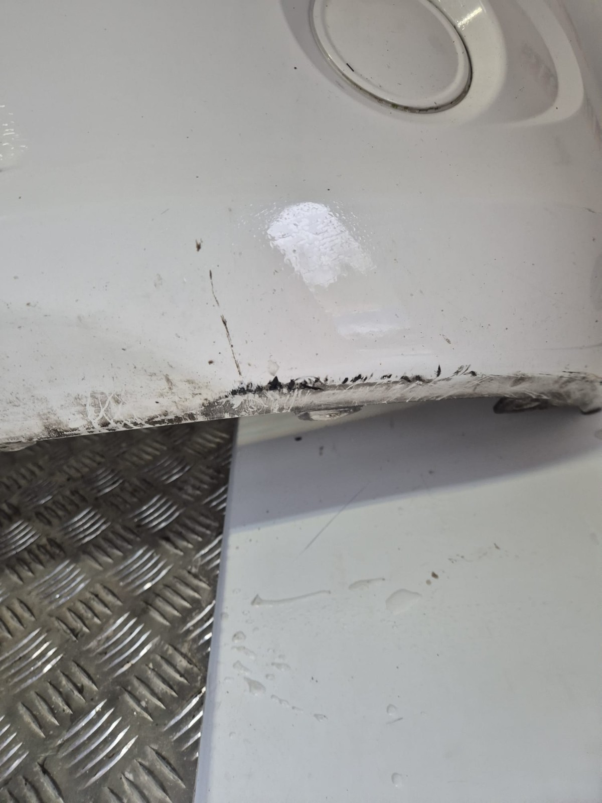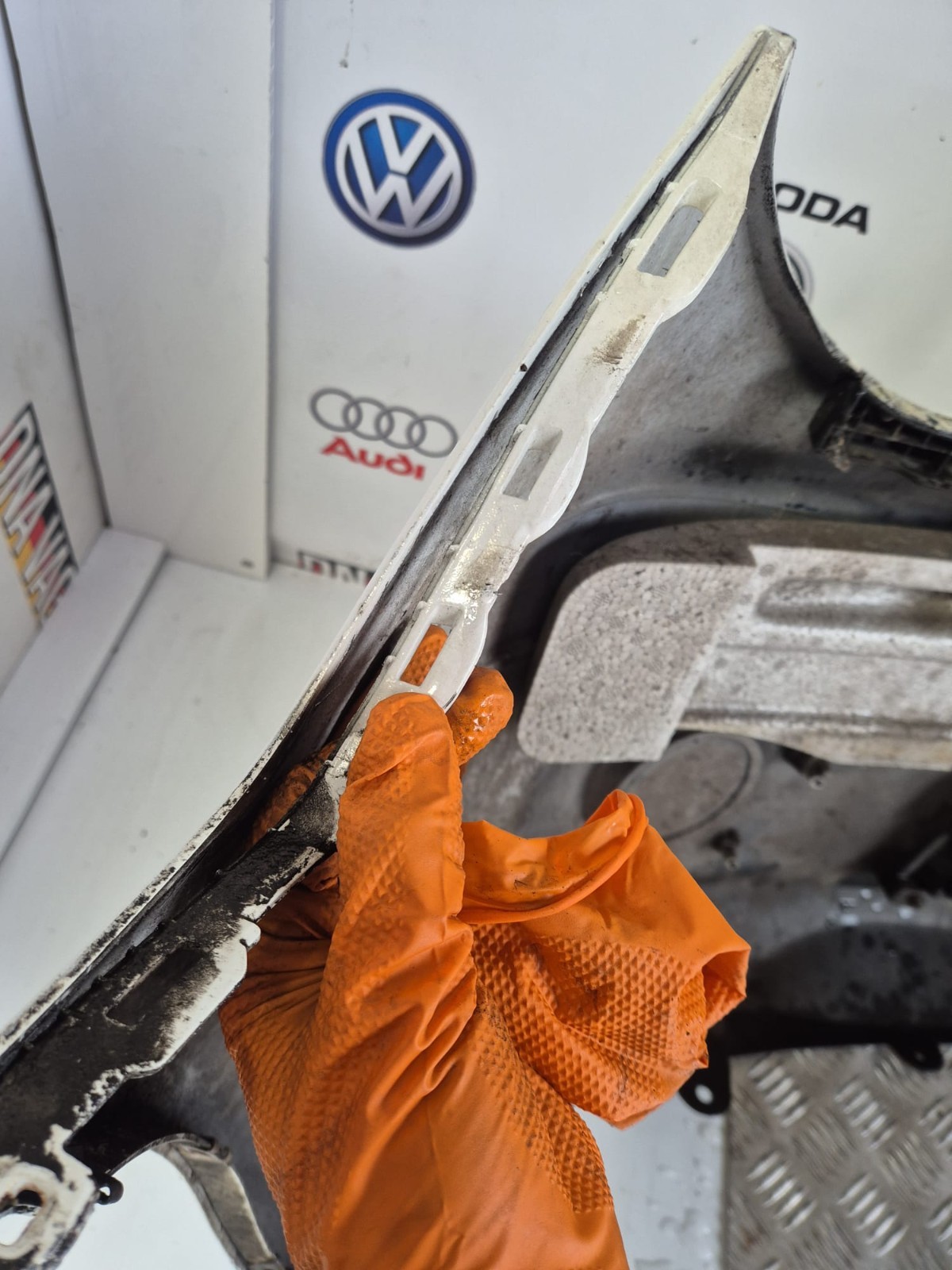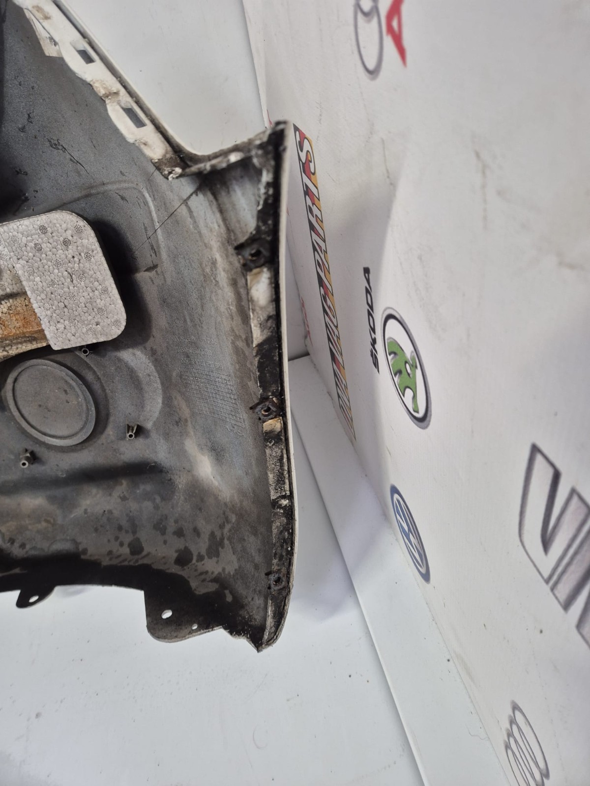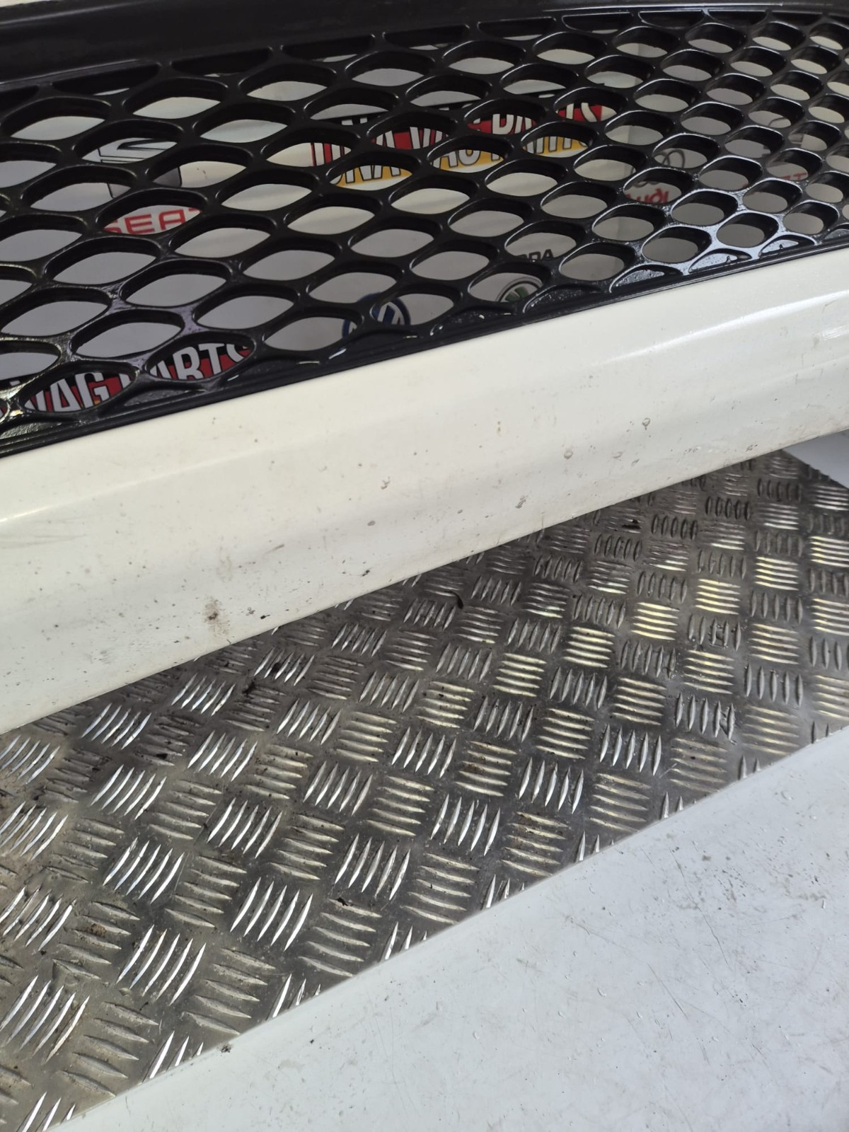 COMPLETE FRONT BUMPER CLEAR WHITE WITH AGE MARKS & DAMAGE