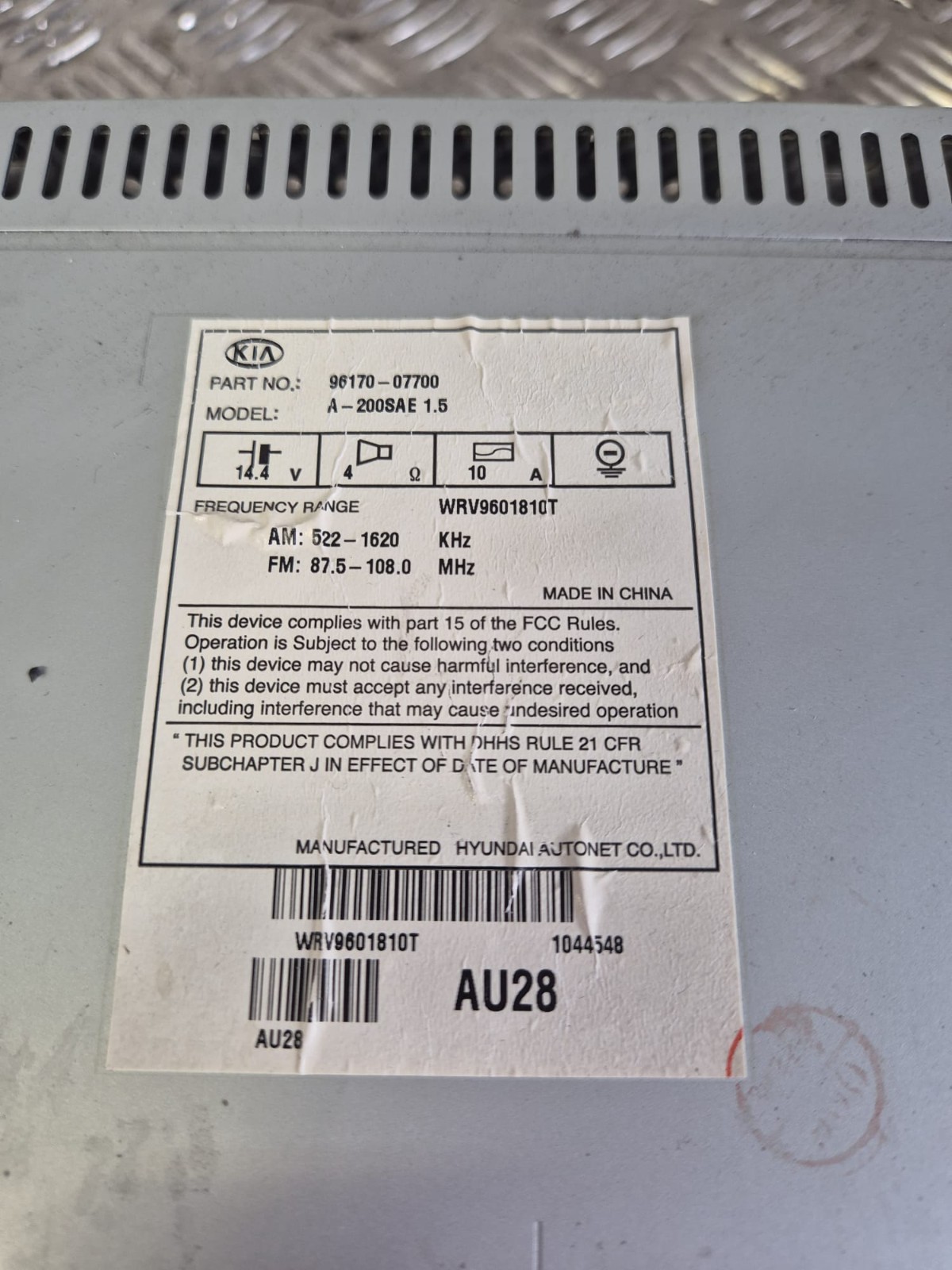 Product: KIA PICANTO 2009 STEREO CD HEAD UNIT NO CODE 9617007700 *FAST DELIVERY*
