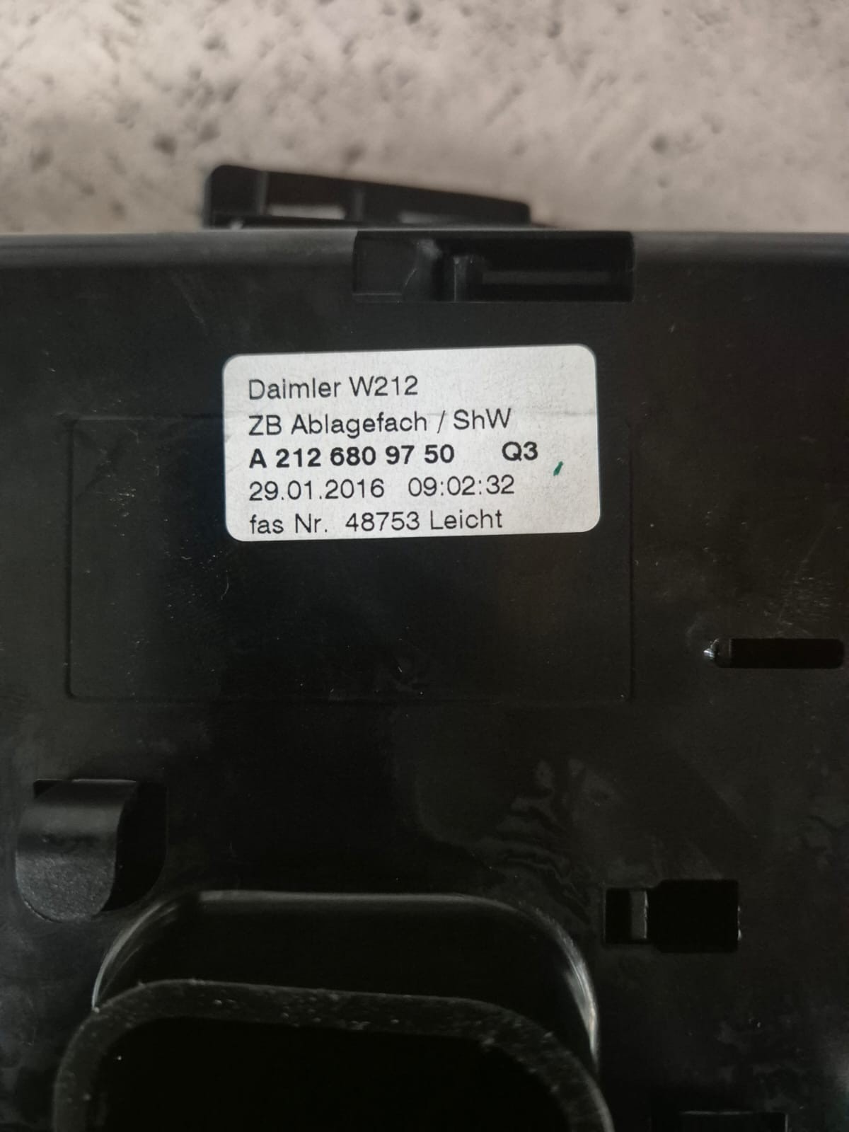 Product: MERCEDES E CLASS 2016 CENTRE CONSOLE STORAGE HOLDER A2126809750