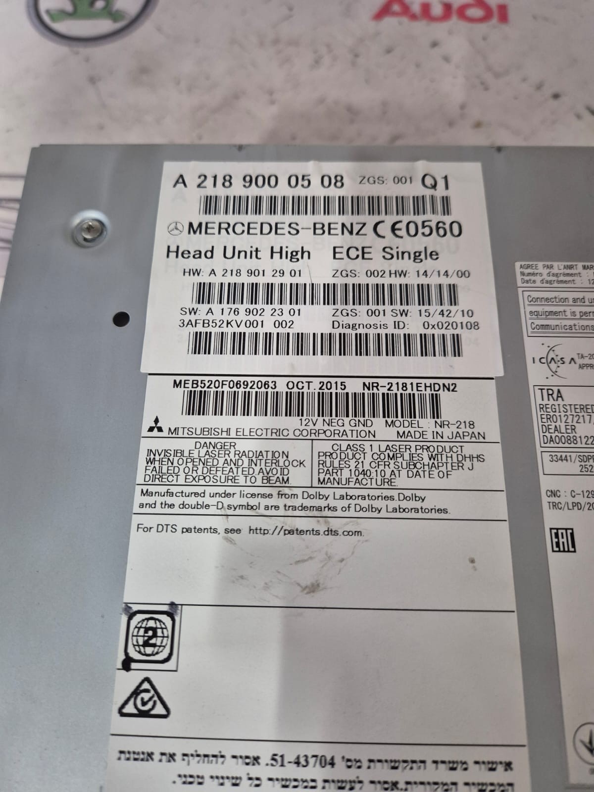 Product: MERCEDES E CLASS 2016 MULTIMEDIA CD RADIO FRONT SEAT BELT A2189000508