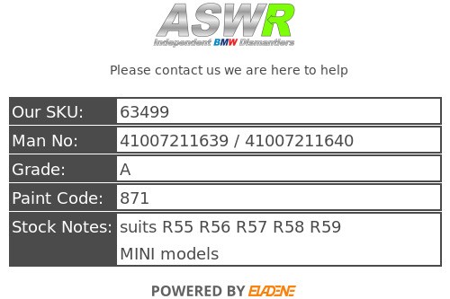 ASWR is a independent BMW dismantler / Green parts supplier based in Manchester. Since its founding in 2003 it has become a reliable independent BMW parts supplier its good customer satisfaction has earned us the status of being one of the UK’s leading BMW dismantlers.