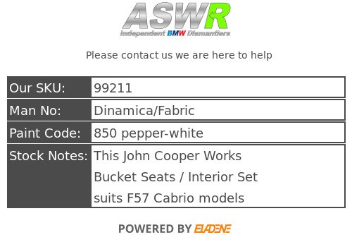 This John Cooper Works Bucket Seats / Interior Set suits F57 Cabrio models