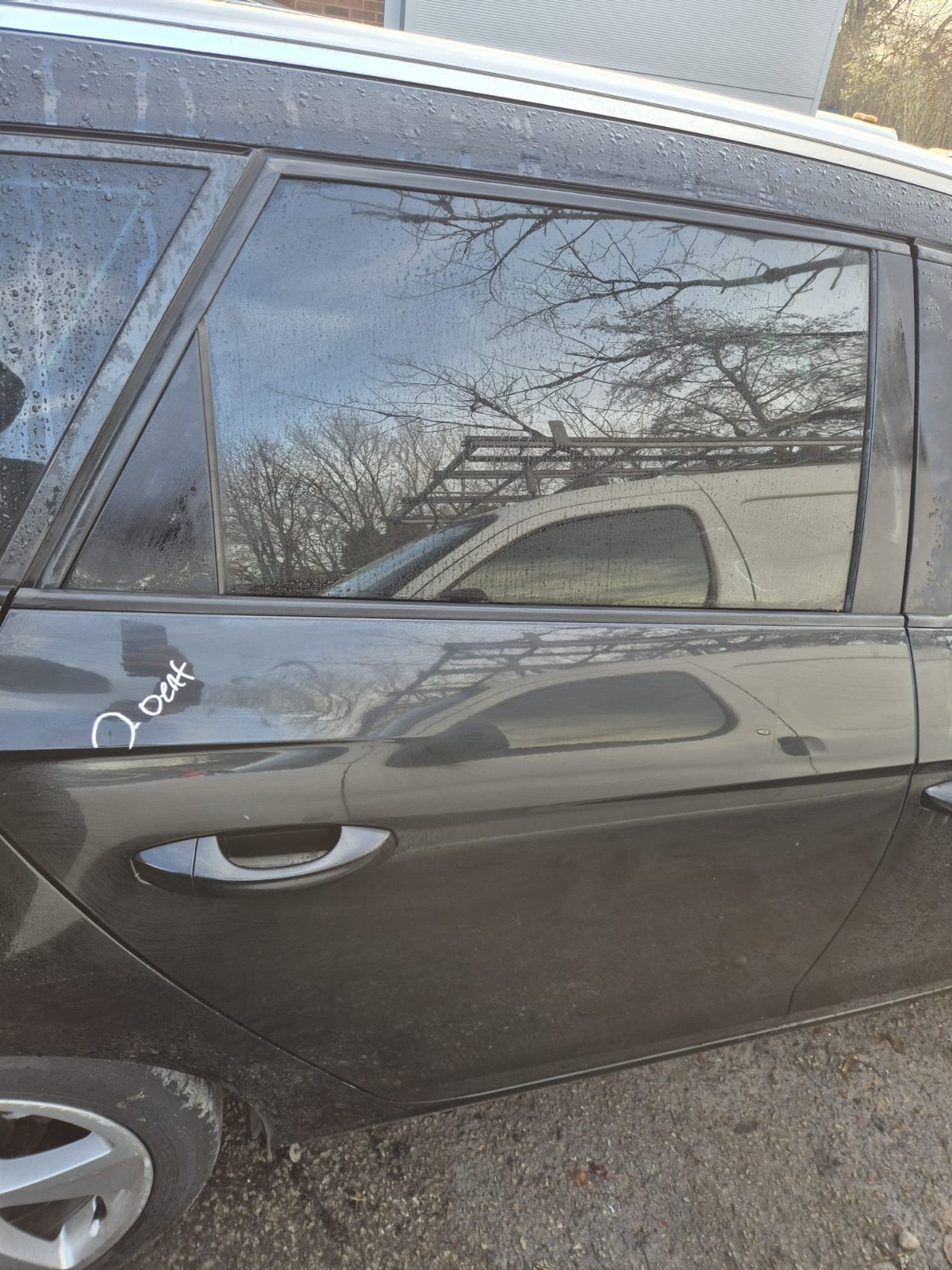 DRIVERS REAR DOOR COMPLETE WITH A FEW SMALL DENTS, PLEASE SEE ALL PHOTOS