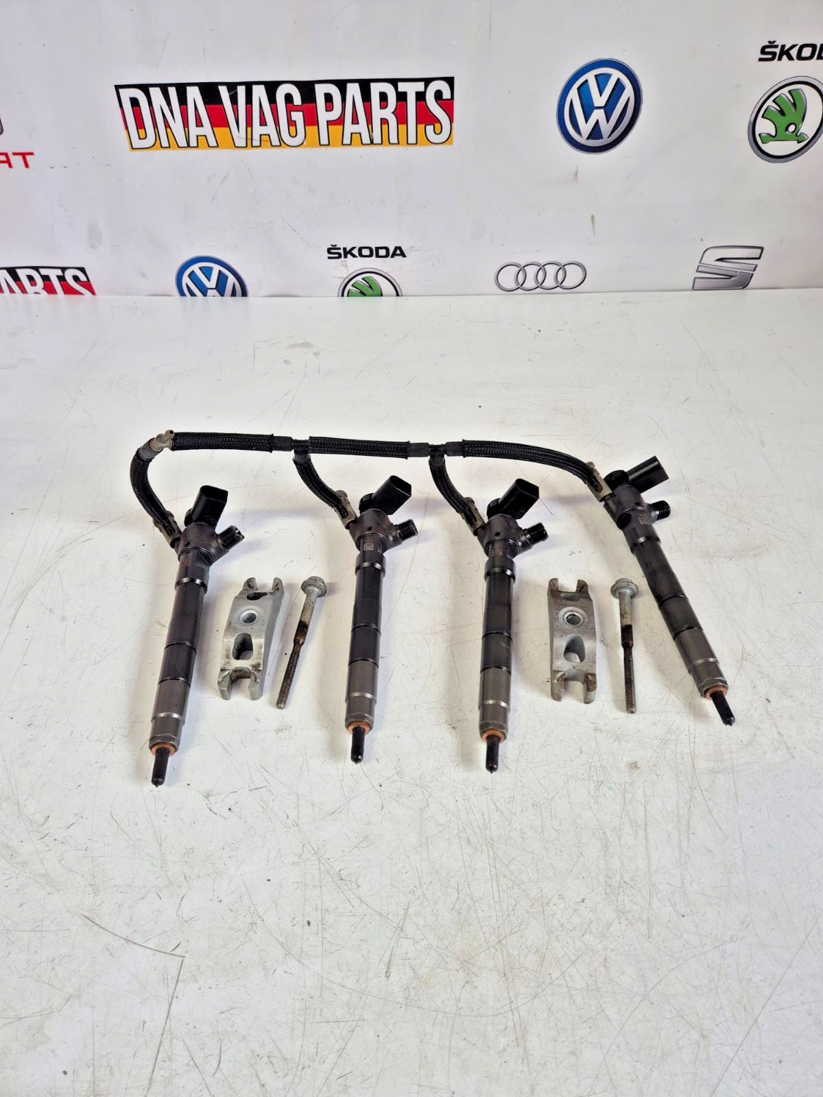 Product: VW GOLF 2017 1.6 DIESEL SET OF INJECTORS WITH LEAK OFF PIPE & CLAMPS 04L130277AN