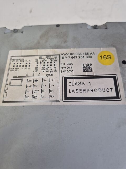 Product: VW PASSAT 2009 RADIO CD PLAYER HEAD UNIT 1K0035186AA