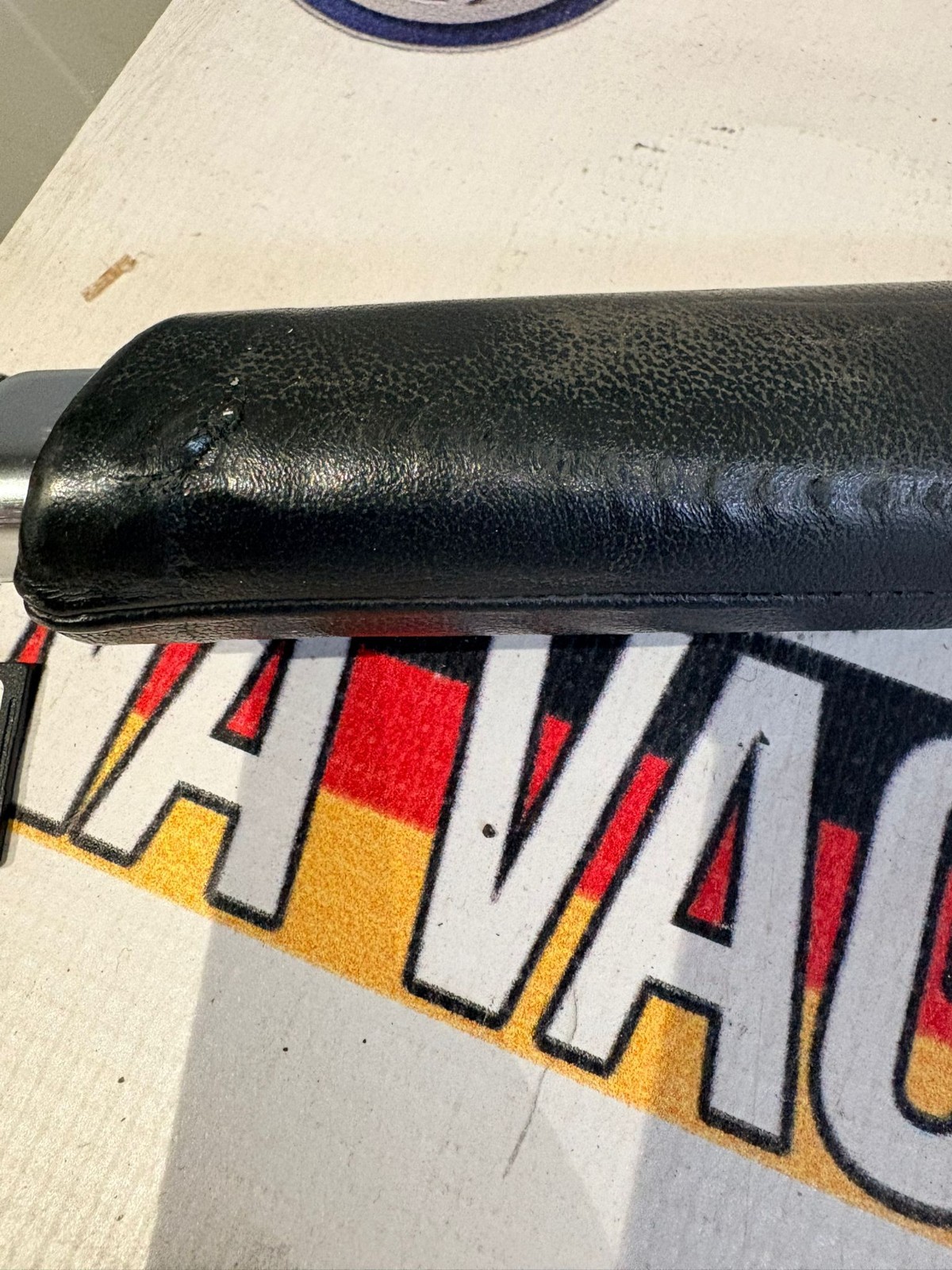 HANDBRAKE LEVER RED STITCHING WITH AGE RELATED MARKS