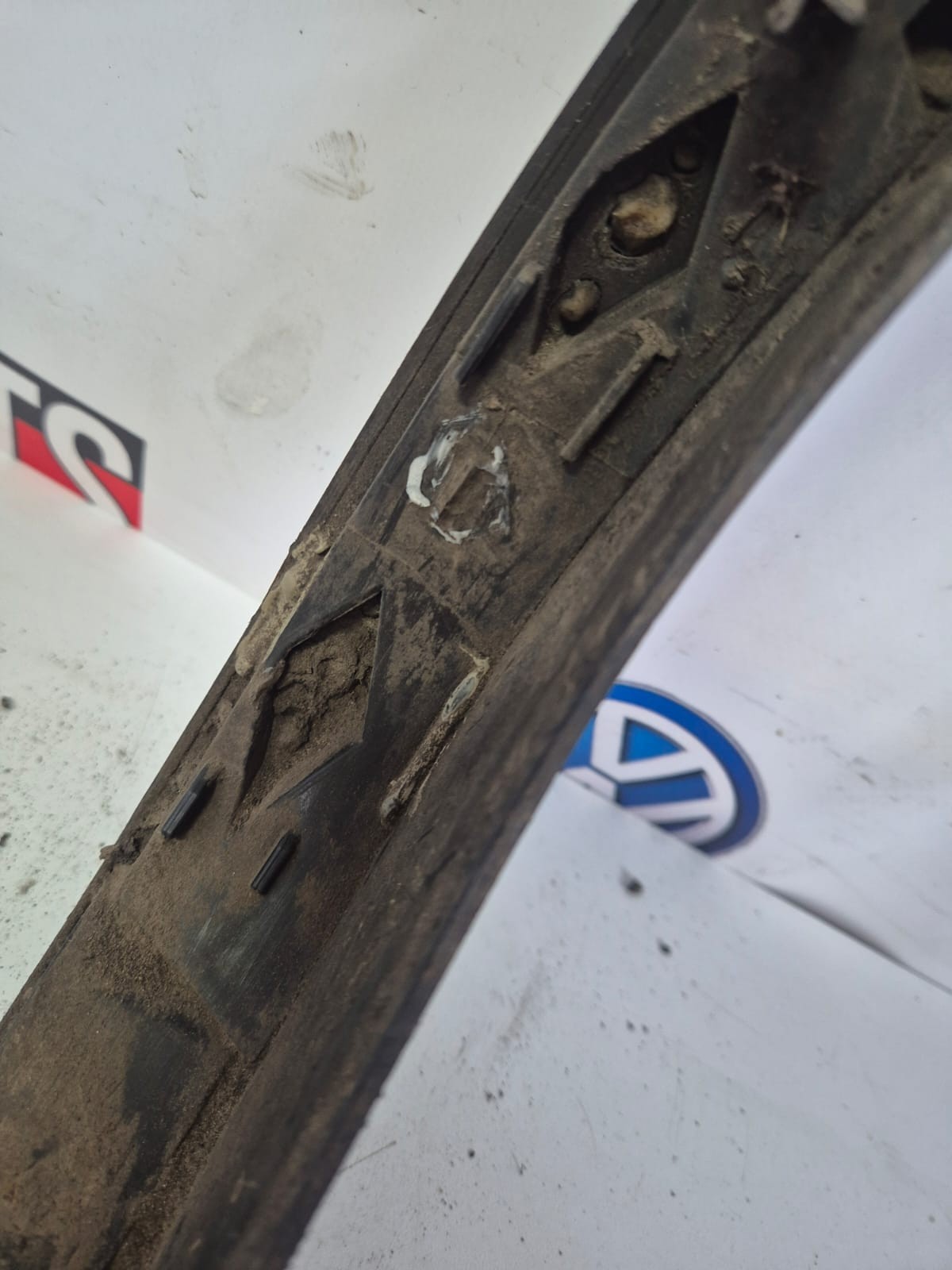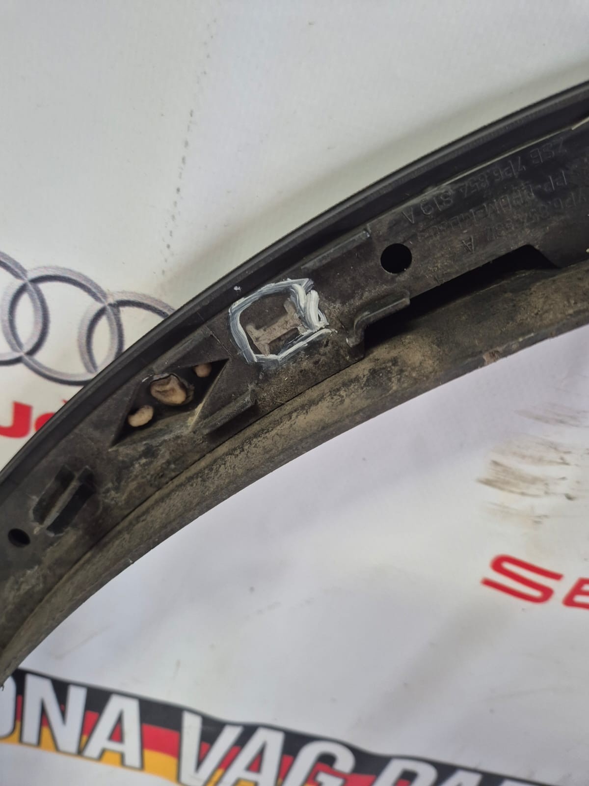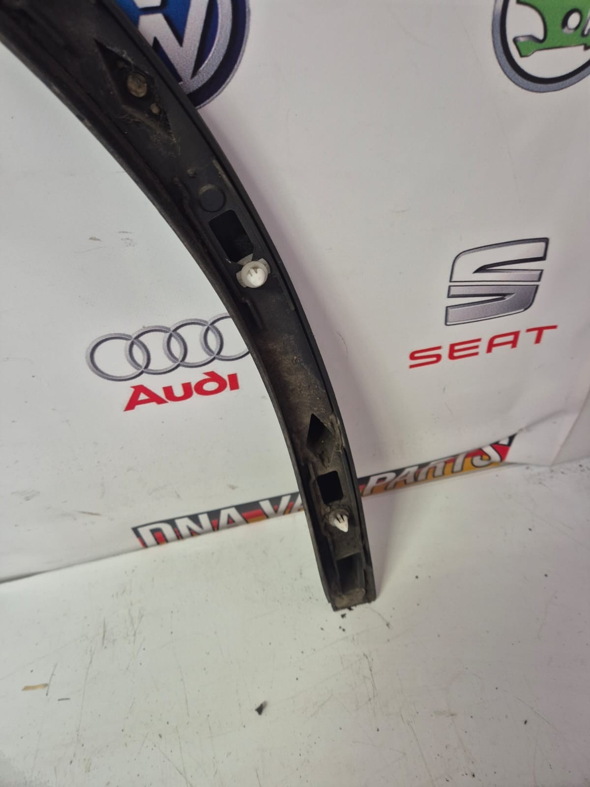 PASSENGER REAR ARCH TRIM MOULDING WITH BROKEN LUGS AND AGE RELATED DAMGE, PLEASE SEE PHOTOS