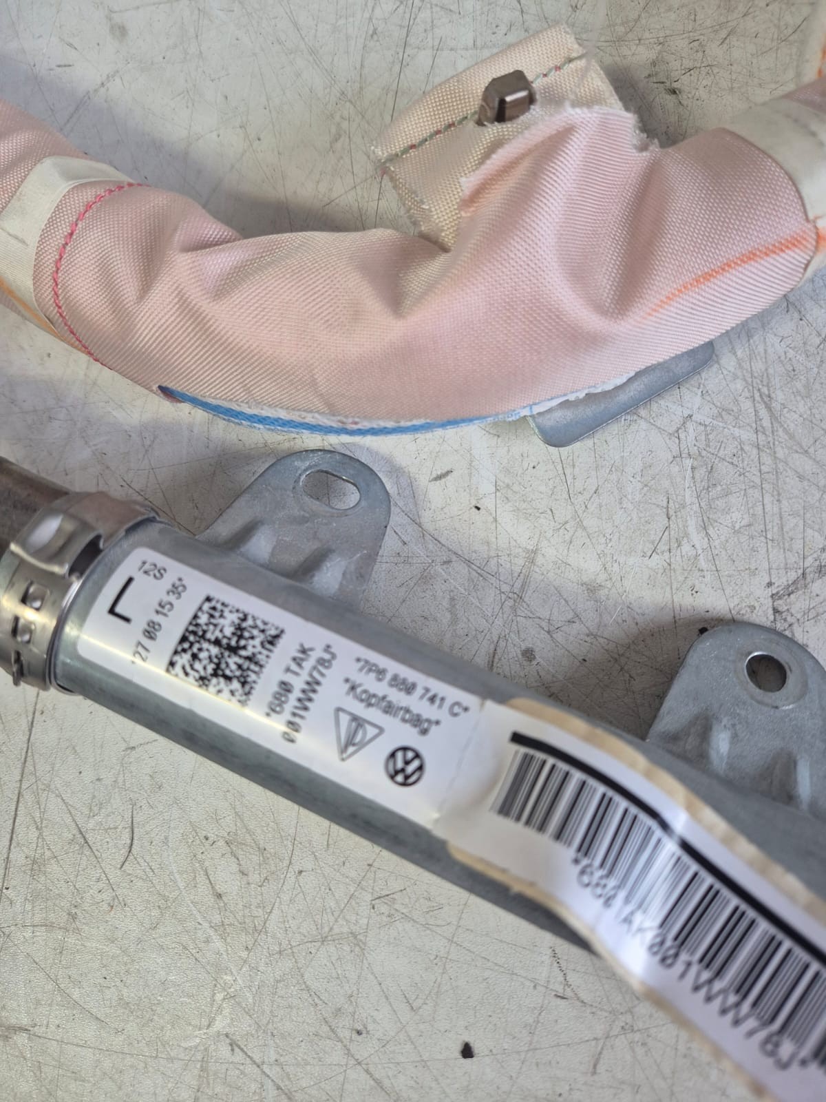 Product: VW TOUAREG R-LINE 2016 7P PASSENGER SIDE CURTAIN AIRBAG 7P6880741C WITH CLIPS