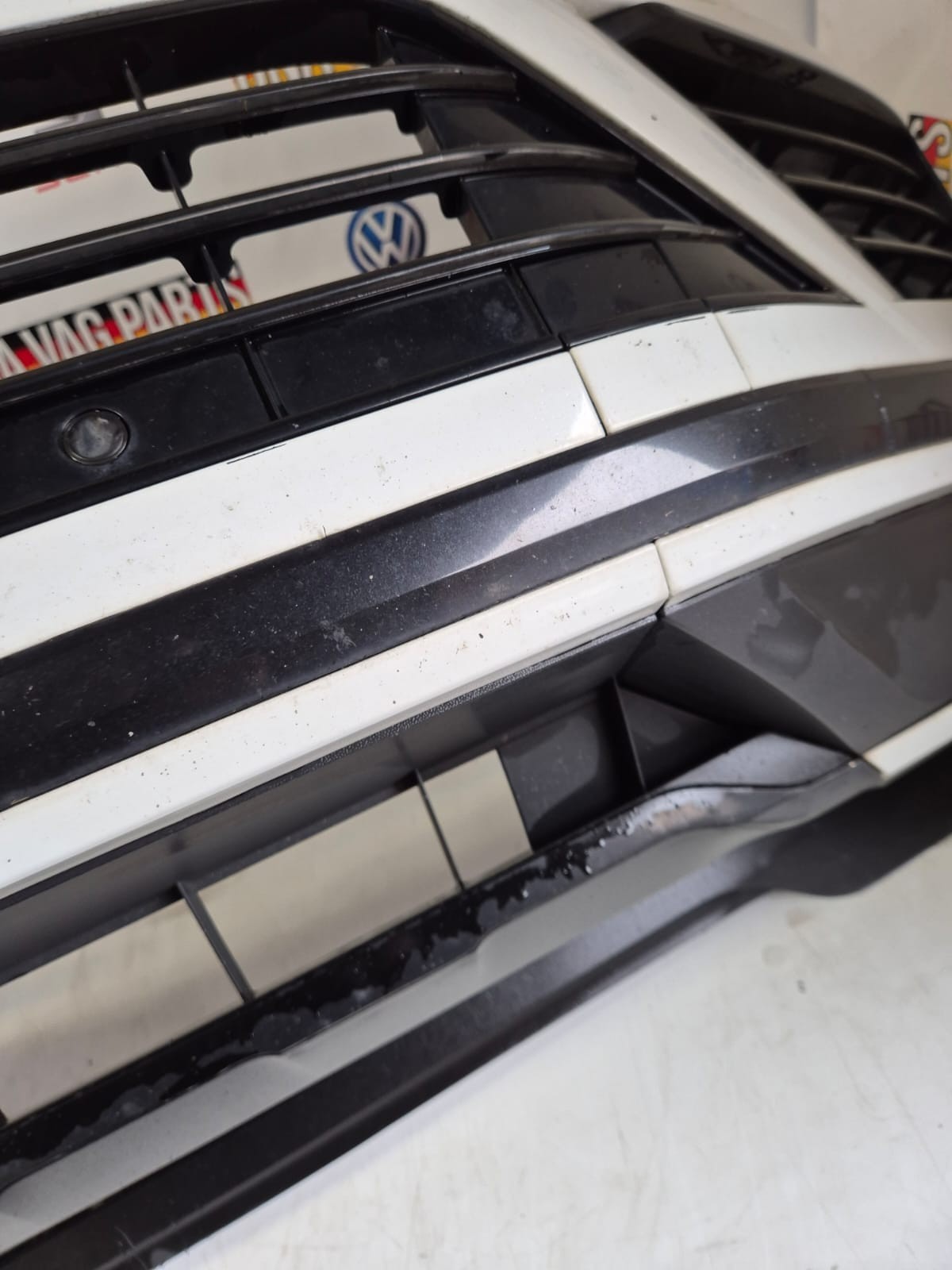 Product: VW TOUAREG R-LINE 2016 COMPLETE FRONT BUMPER WITH AGE MARKS PAINT CODE LC9A